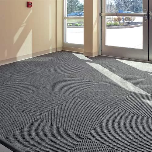 Our Diagonal Carpet Tile is ideal for use in commercial buildings such as; banks, churches, hospitals, schools, sports facilities, and lobbies. This carpet tile is available in Gray, Charcoal, and Beige