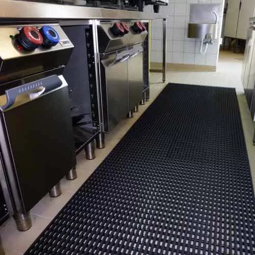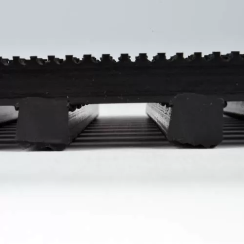 This type of heavy duty anti fatigue matting offers a dual-layer design, so liquid and moisture can drain through the holes in the grid to reach the subfloor or the ground underneath, keeping the surface of the matting drier and safer for walking.