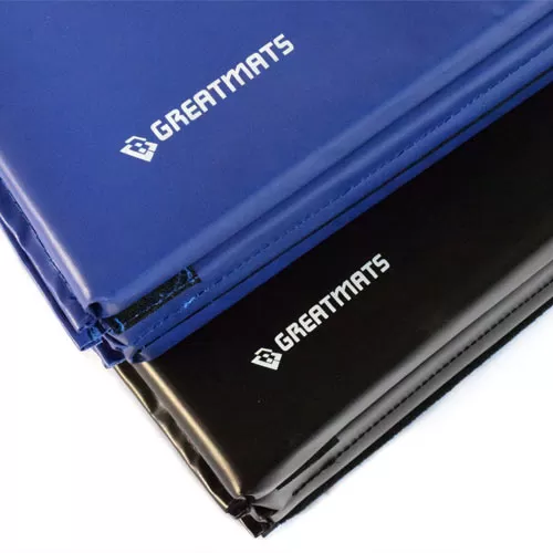 Our foldable options are hand crafted with extremely durable 18-ounce coated vinyls and double stitched seams. The blue gym mat selections feature a 2” hook and loop fastener strip on every side for a full attachment.