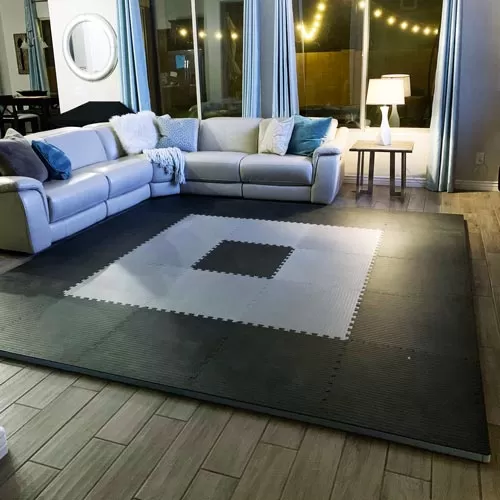 With the interlocked layout and puzzled edges, customers can pick the exact total coverage they want. For 10×10 jiu jitsu mats for home, just keep adding pieces until matching the desired square footage. This particular model has dimensions of roughly 2’ by 2’ per unit, which equals a reasonable price per sq. ft.