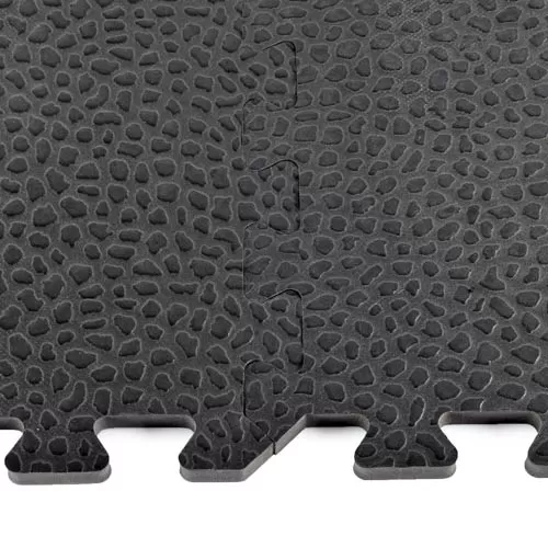 These are colored black throughout and will maintain a great look, as they resist showing wear and tear, thanks to the tough EVA foams used. The pebble surface has a professional, finished look, meaning our customers can be comfortable installing them in locales where visitors will see them. They look professional enough to use in a studio too.