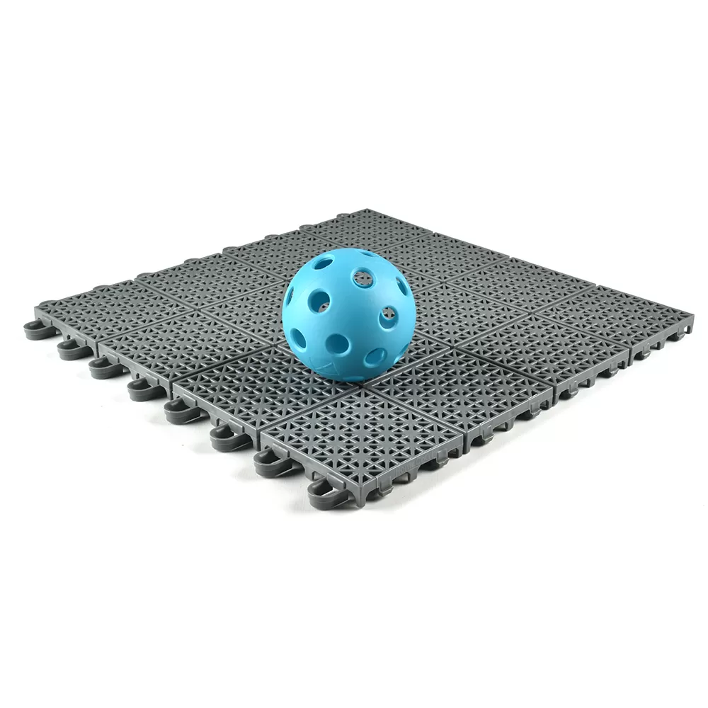 HomeCourt Sport Tiles are designed with narrow ribs for excellent traction and the low abrasion surface reduces wear and tear on sports equipment and shoes. The tile’s expansion joints are designed so that the tiles can be trimmed tight to your fence or border to give your court a professional, finished look. Each tile contains 400 heavy duty support legs and each tile side features 8 latch locks for connection.