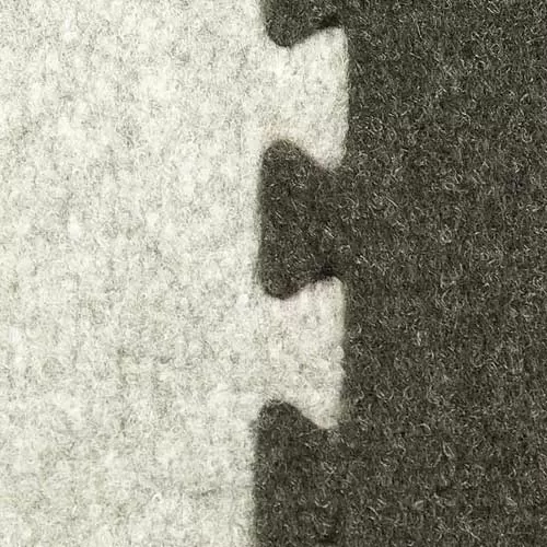 Some of our customers will choose to order multiple colors of the 20×30 foot interlocking carpet tile kit and then use those colors to create a checkerboard or other type of color pattern in the carpeting. Understand that because of the puzzle style edges on each tile, creating a checkerboard color pattern in the flooring will not result in a straight edge between tiles, as the contrast in tile colors will clearly highlight the jagged puzzle edges.