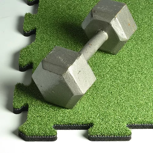 This style of indoor-only artificial grass tile is ideal for athletic workouts. Agility training for track and field or football athletes, as well as soccer skill training, is a common use case for these tiles. Athletes receive the perfect level of traction for such workouts.