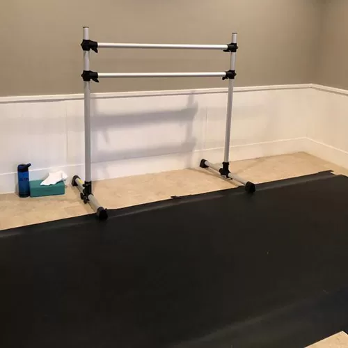 Marley portable dance floor is slip resistant and delivers a strong dance marley floor alternative for tapping. The surface texture of the portable marley dance floor doesn’t always deliver the sound tap dancers want, but the freedom of movement and sliding is desirable. It’s also far more affordable than traditional hardwoods.