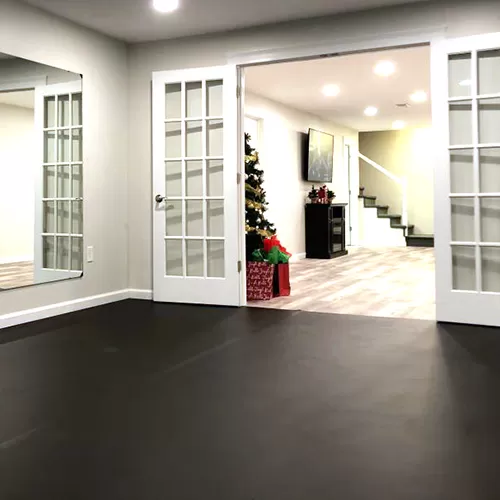 Numerous types of materials will work underneath double sided portable marley dance floor for home. Some place polypropylene tiling over carpet as the modern dance subfloor. Others may prefer rubberized items, plastics, or foams that go nicely over concrete. Marley dance mat products fit perfectly atop all of these items.