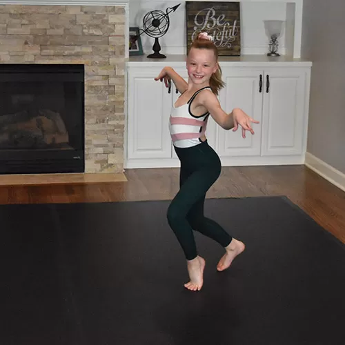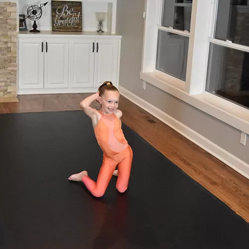 Rosco Adagio Marley Dance Floor Black 5.25 Ft. x 8 Ft. option can be used for all dance types, including ballet, modern, jazz, Irish, Flamenco, lyrical, hip hop, drill team, ballroom, and barefoot dancing. It works well for dance groups looking for a safe practice flooring.