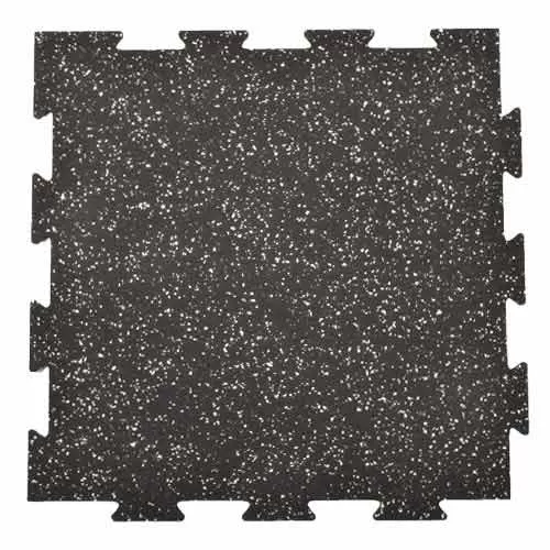 Rubber Tile Interlocking 20% Color 8 mm x 2×2 Ft. Pacific features a 20 percent color fleck in a black base. This rubber flooring tile is the product of choice for many of the most popular athletic companies, along with a large number of universities. Manufactured from recycled tires, this rubber flooring tile is a durable, high quality flooring solution that takes the abuse of heavy traffic areas while keeping its composure.