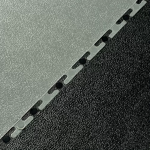 Because every color of these 20×20 smooth garage floor tiles uses the same T-shaped interlock edge pattern, installers can mix and match colors. However, the T-shaped edge will be clearly visible when mixing colors. If you use a solid color throughout the grid, the T-shaped edge essentially disappears from view.