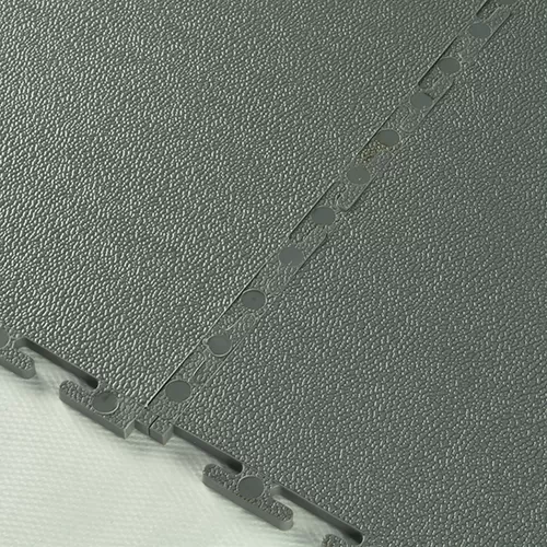 These PVC interlocking floor tiles have a subtle texture molded into the surface that almost resembles the surface of a leather football. This enhances the slip resistance that customers receive after installing this type of flooring.