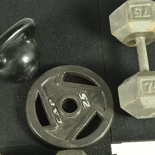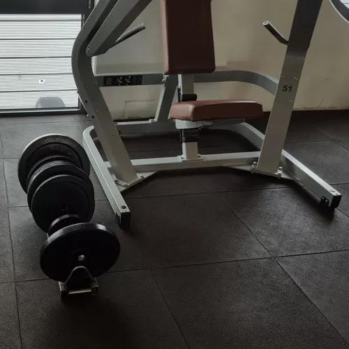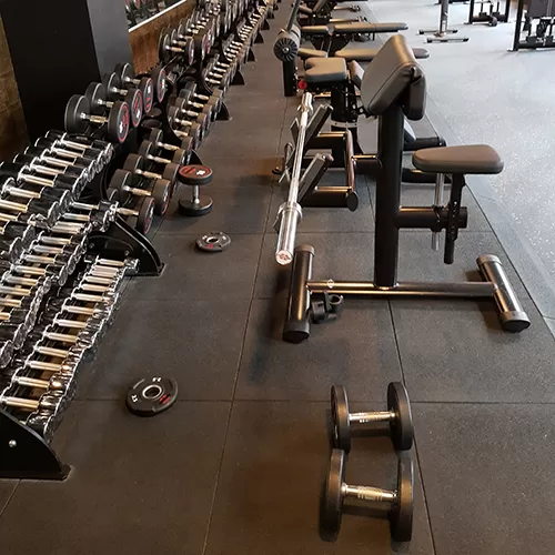 Each of these interlocking gym floor mats measures 2 by 2 feet, meaning you’ll receive a good coverage area from our rubber gym floor squares, which makes installation go faster. Each tile weighs 19.3 pounds, so it can be tricky for one person to perform the work. Installing this best rubber gym flooring goes faster when you have multiple people involved.