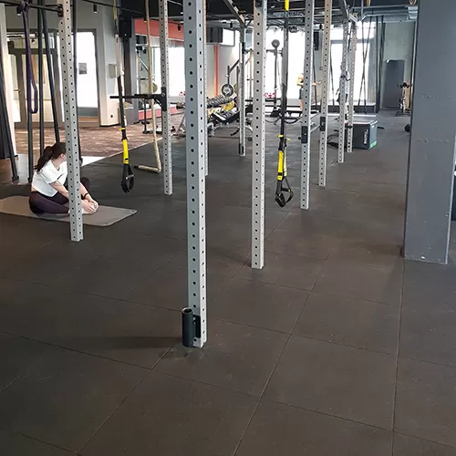 Use Sterling Athletic Sound Rubber Tile in professional gyms, weight rooms, and locker rooms where sound reduction is needed. If sound and vibrations are traveling beyond your facility’s floors and walls, the Sterling Athletic Sound Rubber Tile. These tiles will control audible sound transmissions and keep neighboring residents satisfied. These all-in-one fitness floor tiles are performance-engineered to control vibrations, minimize low-frequency impact noise, and reduce the transmission of audible structure-borne sound.