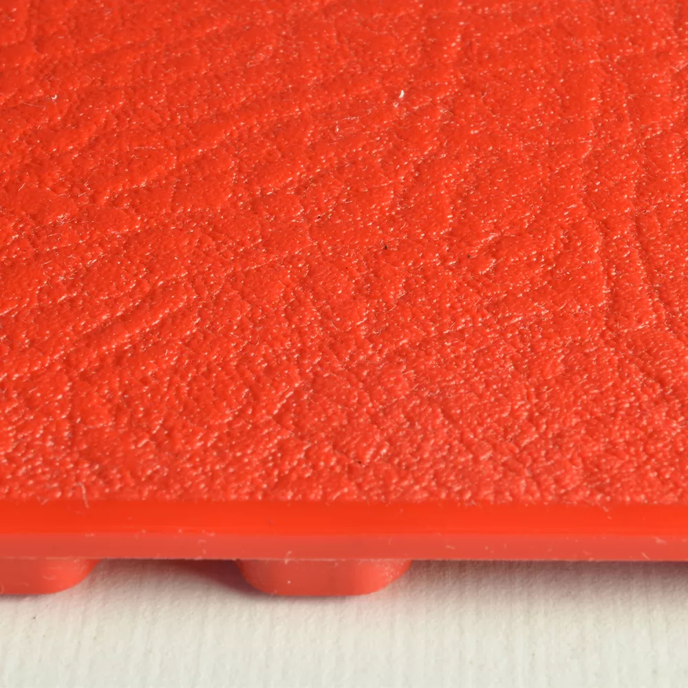 PVC plastic has quite a few advantages over other types of flooring materials. It is lightweight, yet durable, so it works in areas exposed to rough conditions and high levels of foot traffic. Our leather texture tile carries a 20-year limited manufacturer warranty.
