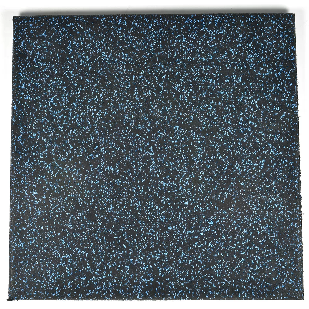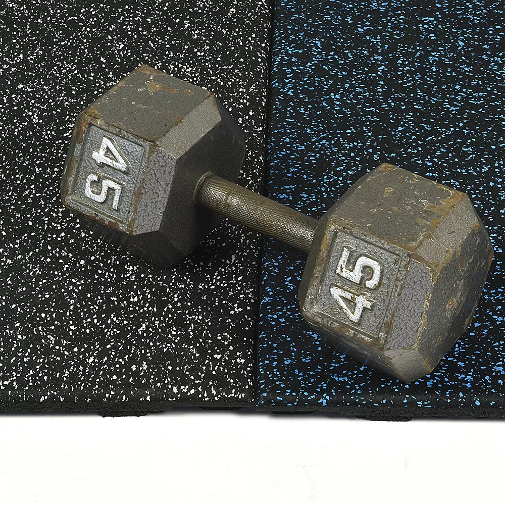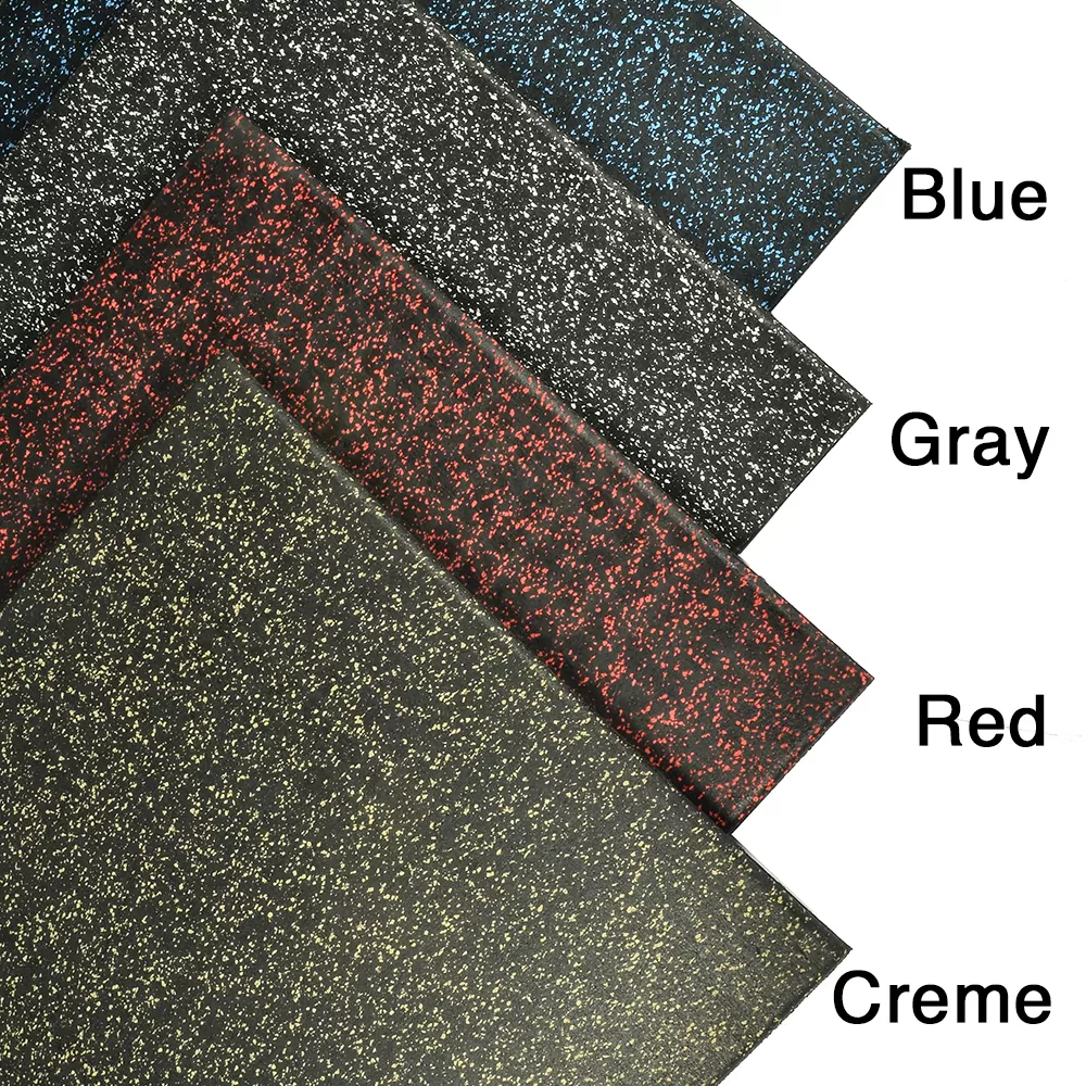 The black base color on these tiles consists of high quality recycled rubber, making it an eco-friendly product without sacrificing durability or longevity. The color flecks embedded in the top layer consist of virgin rubber, creating the desired look for the floors.