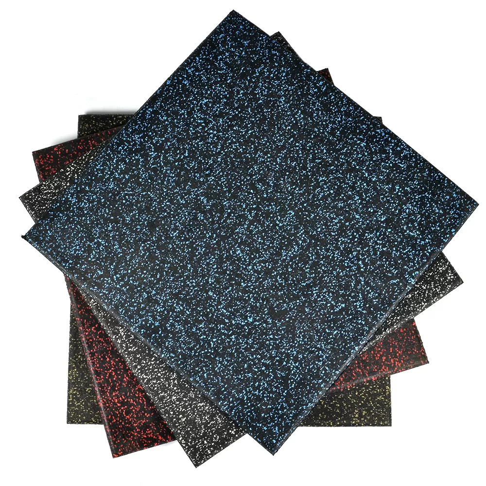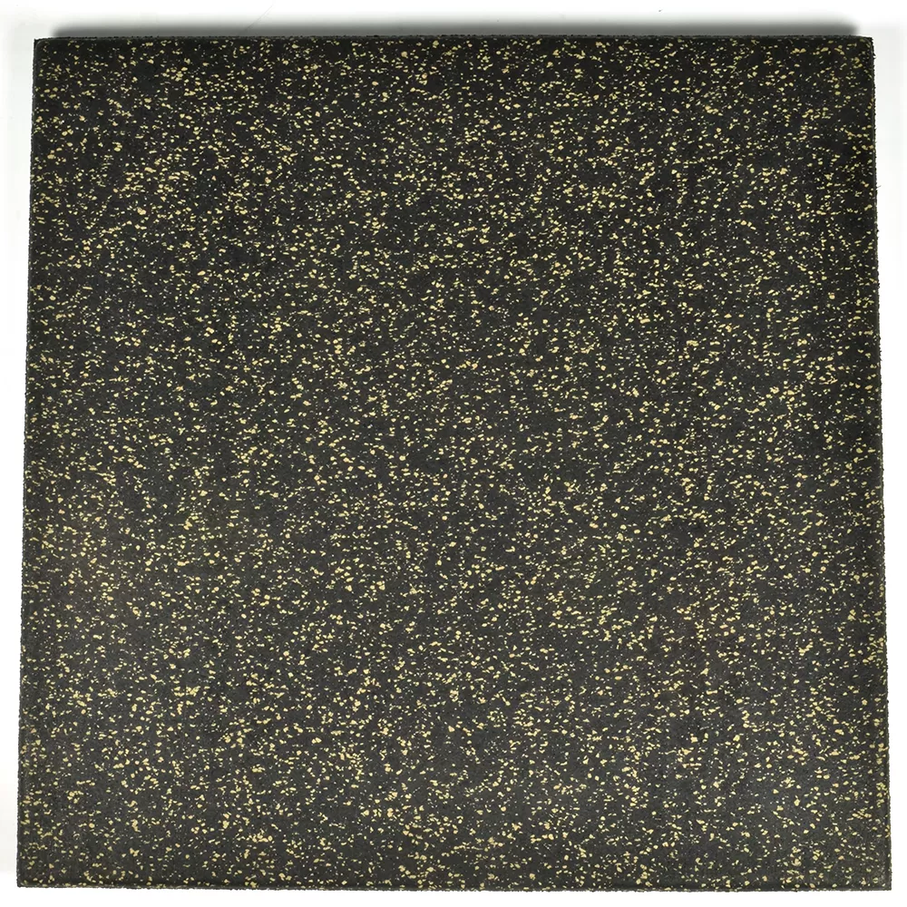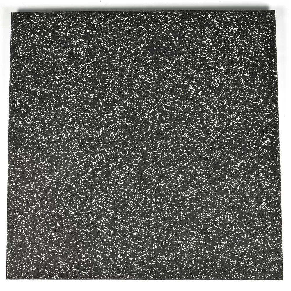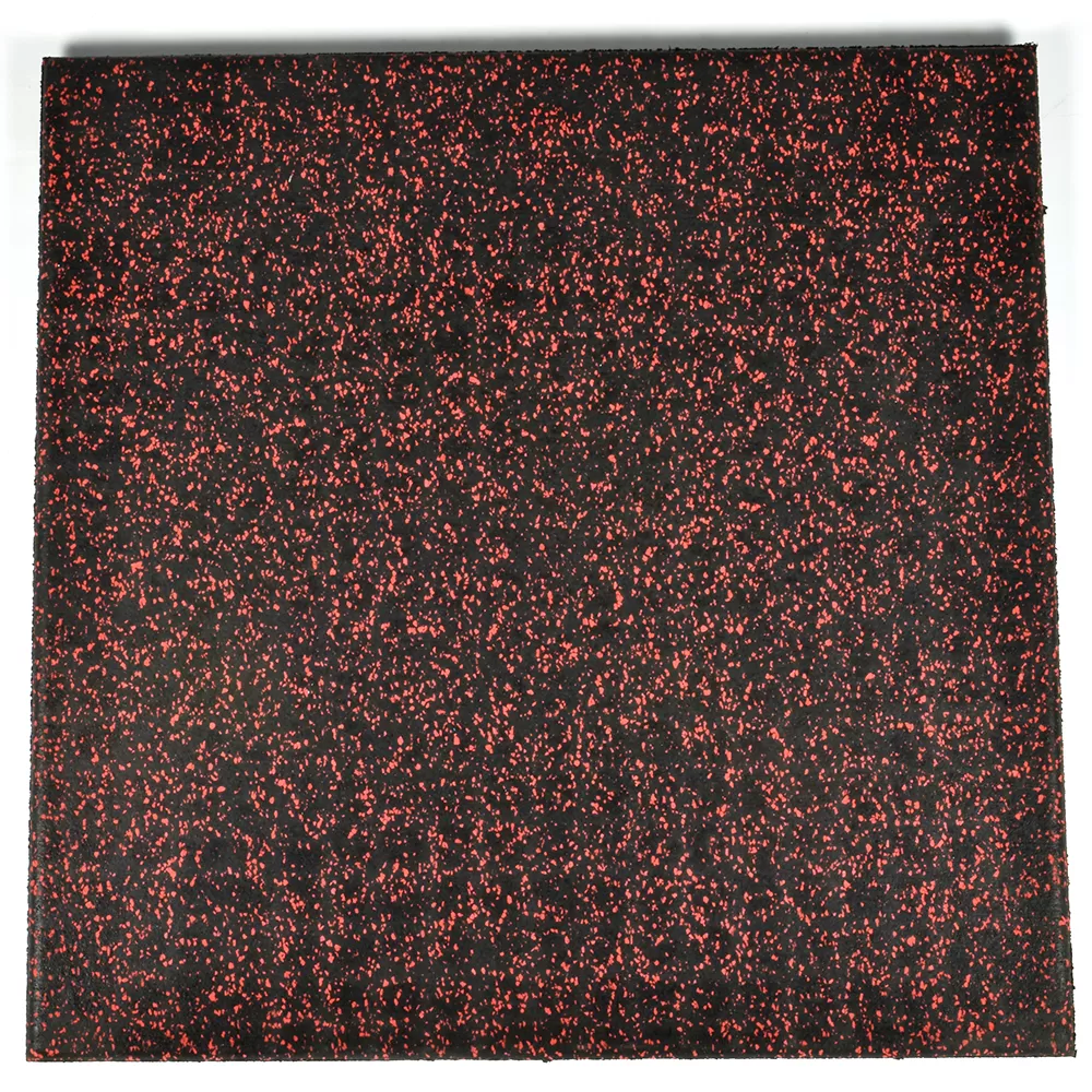 The black base color on these tiles consists of high quality recycled rubber, making it an eco-friendly product without sacrificing durability or longevity. The color flecks embedded in the top layer consist of virgin rubber, creating the desired look for the floors.